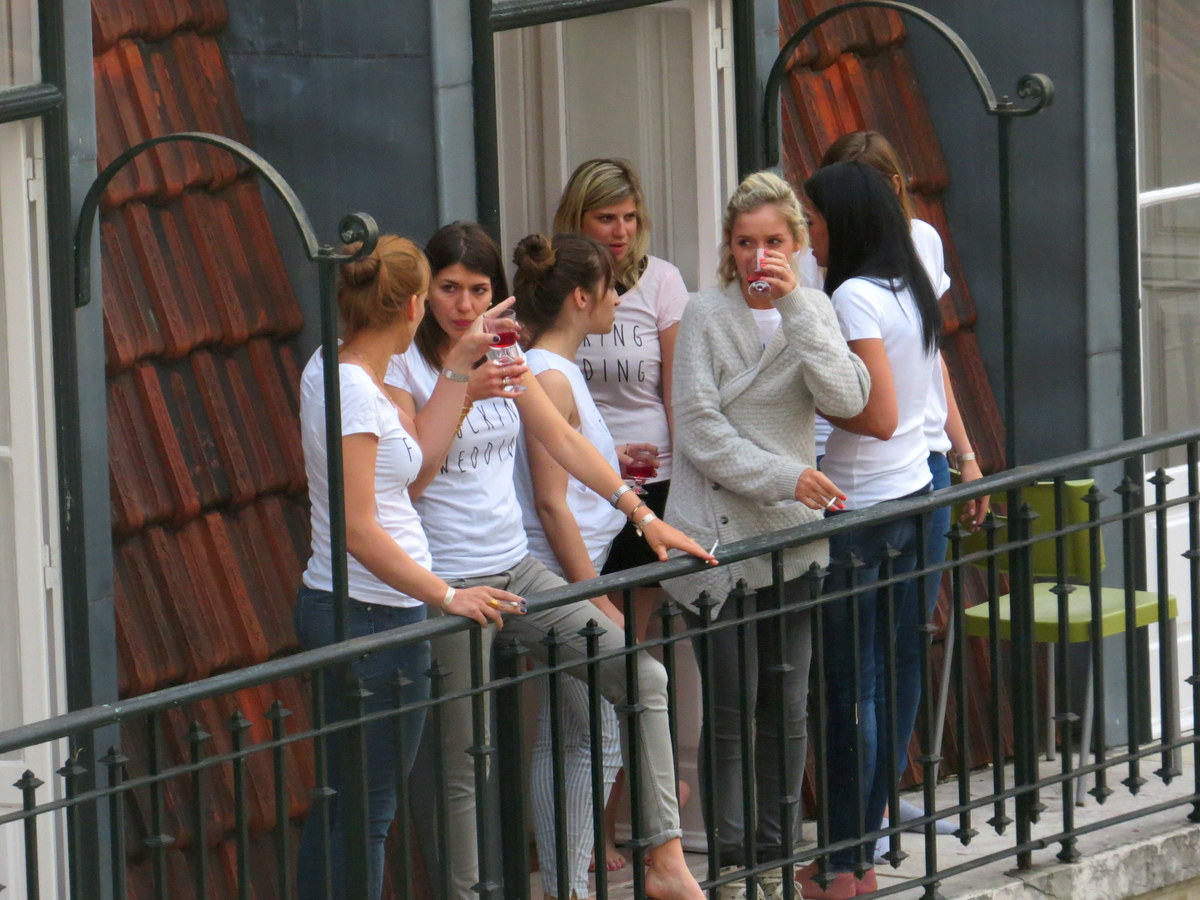 « FUCKING WEDDING » sur chaque t-shirt. Est-ce qu’elles travaillaient pendant un mariage? C’était un shower de mariée? Aucune idée. / « FUCKING WEDDING » on each t-shirt. Were they working a wedding reception? Was it a bridal shower? No idea.