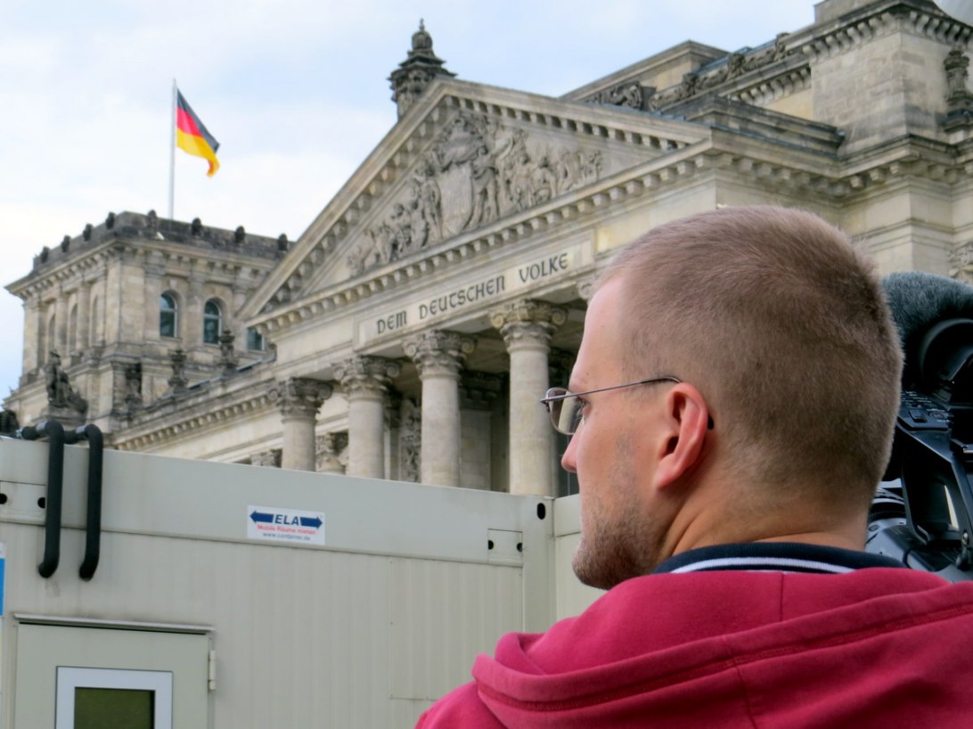 Haha! Busted! Le zoom sur le « DEM DEUTSCHEN VOLKE » (Pour le peuple allemand) est un classique des bulletins d’informations politiques. J’ai pogné le caméraman sur le fait! / Haha. « DEM DEUTSCHEN VOLKE » (For the German people) is a classic during news on German politics. I caught the cameraman red-handed!