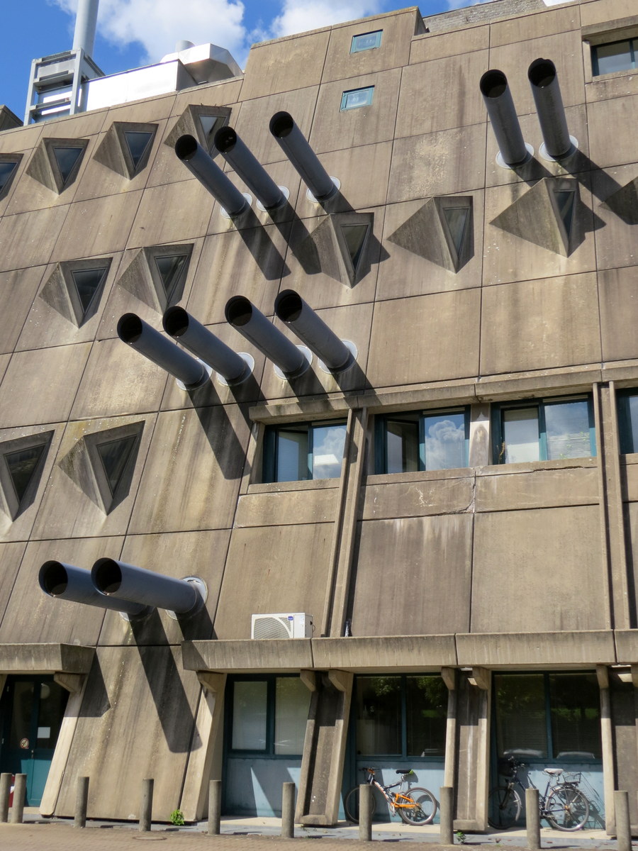 Wikipedia dit : « Les structures brutalistes se composent de formes géométriques anguleuses qui frappent par leur répétition. La formule du « brut de décoffrage » sans revêtement ni fioriture est noble dans cette architecture. » / Translation of the French Wikipedia… « Brutalist structures consist of angular geometric shapes that are striking in their repetition… » « Brutalist » doesn’t come from « brutal », but from « béton brut » (raw concrete).