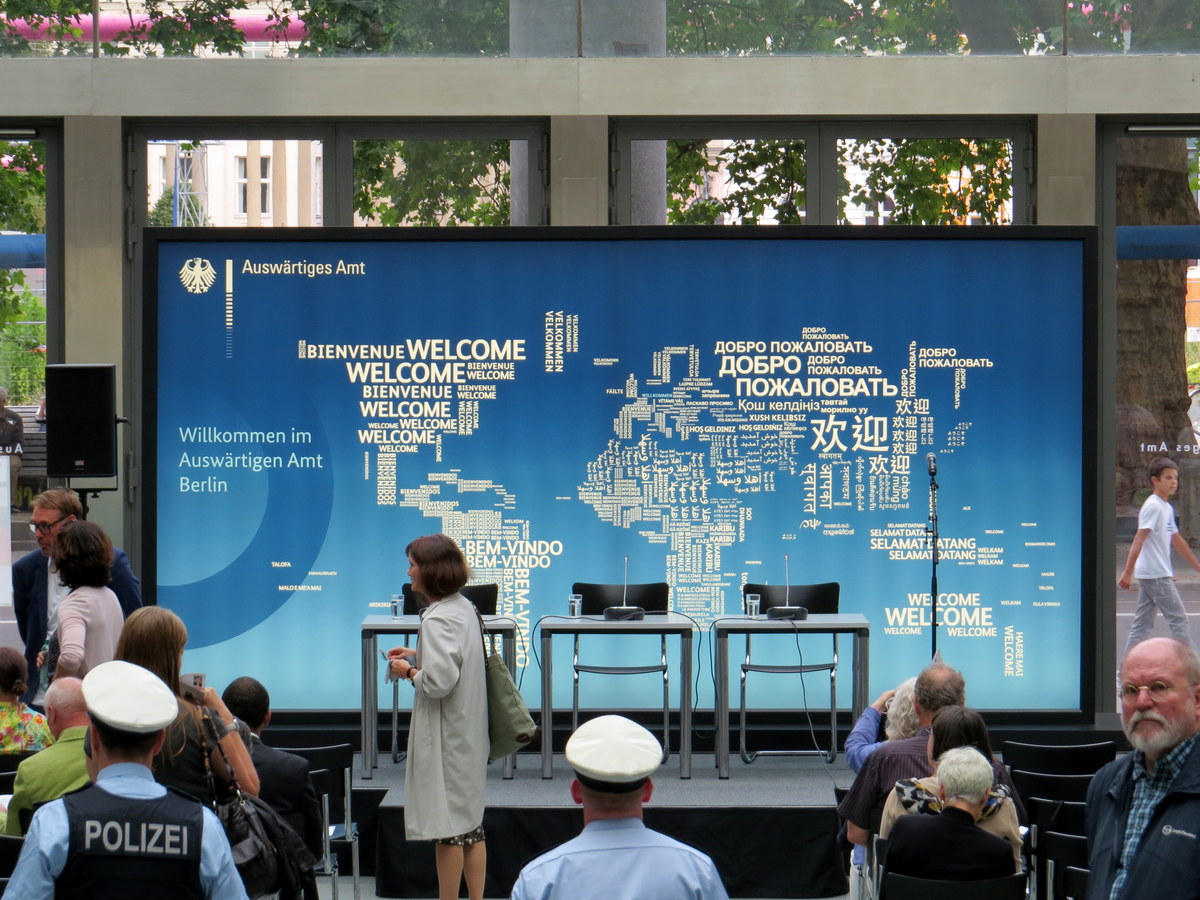 Jolie touche. « Bienvenue » dans la langue de chaque pays pour créer une mappemonde. / Nice touch. « Welcome » in the country’s language to create a world map.