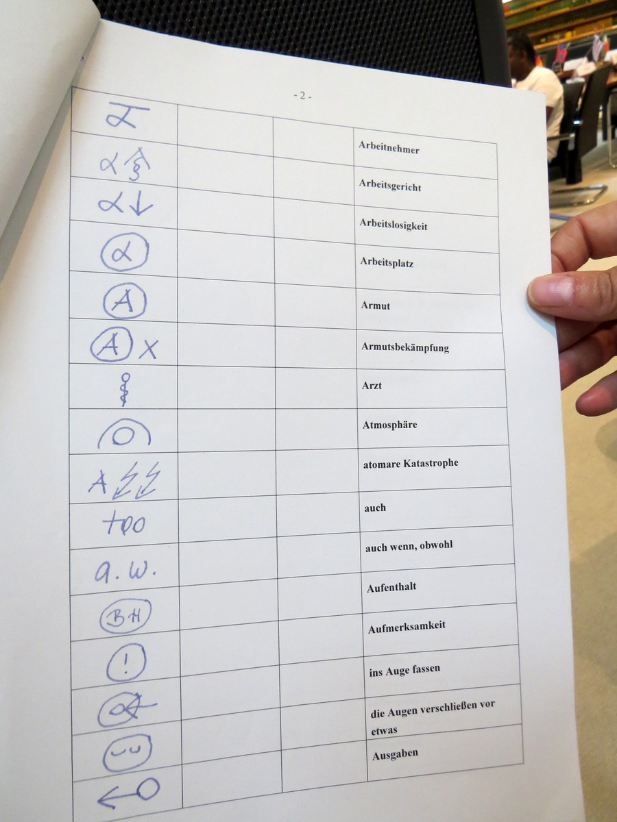 Un genre de sténo pour les interprètes consécutifs. / A type of code (steno) for consecutive interpreters.
