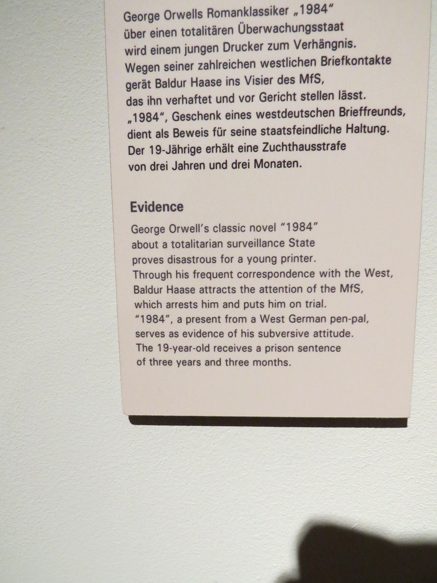 Le crime : posséder un exemplaire de 1984. Trois ans et trois mois de prison. / The crime: owning a copy of 1984. Three years and three months of jail.