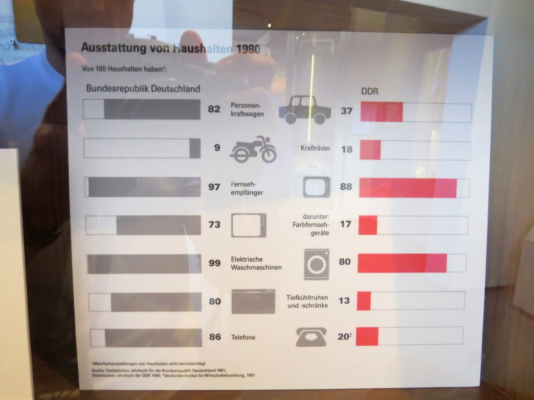 Différence de pourcentage de possession de certains objets entre la RFA et la RDA. / Differences in ownership of certain products between FRG and GDR.