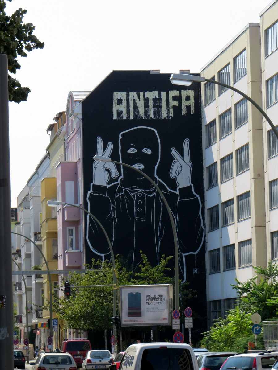 Murale antifasciste pas loin de là. / Antifascist mural nearby.
