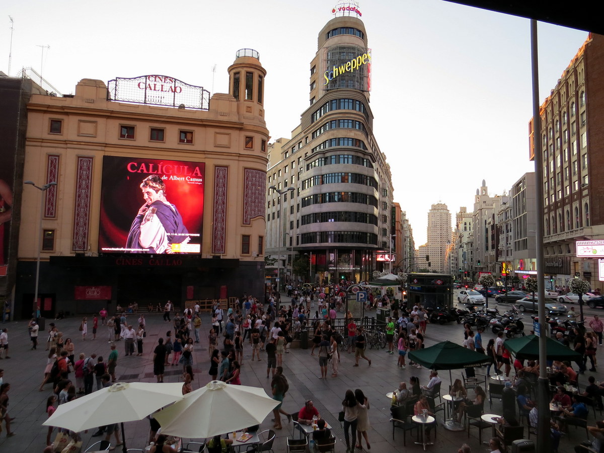 Plus tôt, vue de la fenêtre du Pans & Company sur Gran Via. / Earlier, the view from the window of the Pans & Company on Gran Via.