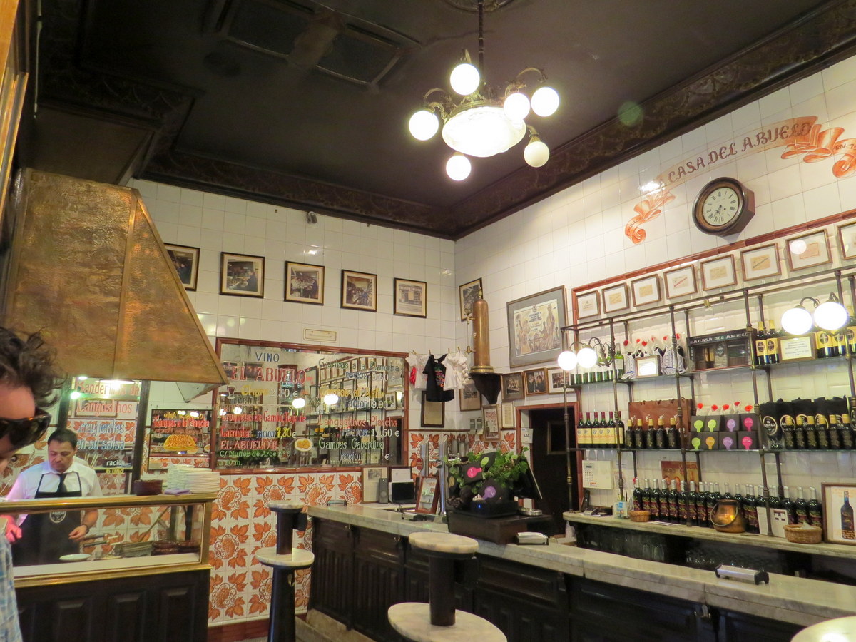 Notre premier arrêt. Crevettes dans l’huile et… langoustines (je pense)? / Our first stop. Schrimps in oil and… scampis (I think)?