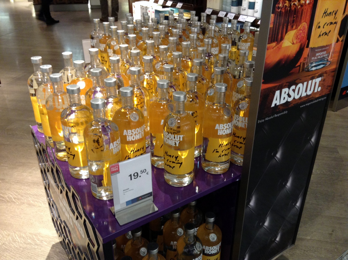 Absolut Honey! En mélange, c’est pas trop mal (ils y faisaient goûter), mais l’odeur à elle seule me faisait lever le coeur. / Absolut Honey! Mixed up it’s not too bad, but the smell alone almost made me gag (it’s insane strong).