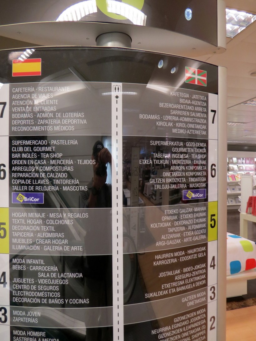 Au El Corte Ingles, bilingue espagnol-basque! / At the El Corte Inglés, bilingual Basque and Spanish.