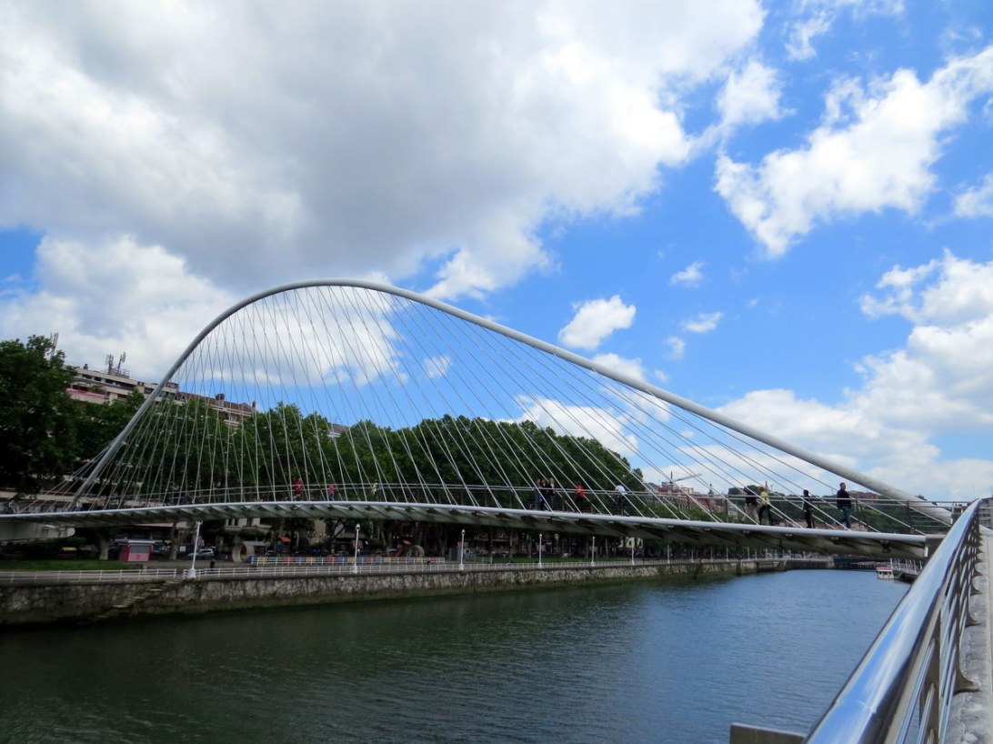 Voici le pont piétonnier Zubizuri (« pont blanc » en basque)! / Here is the Zubizuri footbridge (« white bridge » in Basque »).