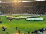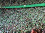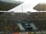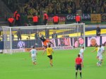 - … et de l’autre côté, les fans de Wolfsburg. Sauf que Dortmund est de nature plus populaire, et donc omniprésent. / … and on the other side, Wolfsburg fans. However, Dortmund is more popular, and their fans almost took over the place.