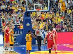 - Une flamme jaillit à chaque joueur d’Alba. / There’s a burst of flame every time a Berlin player is introduced.