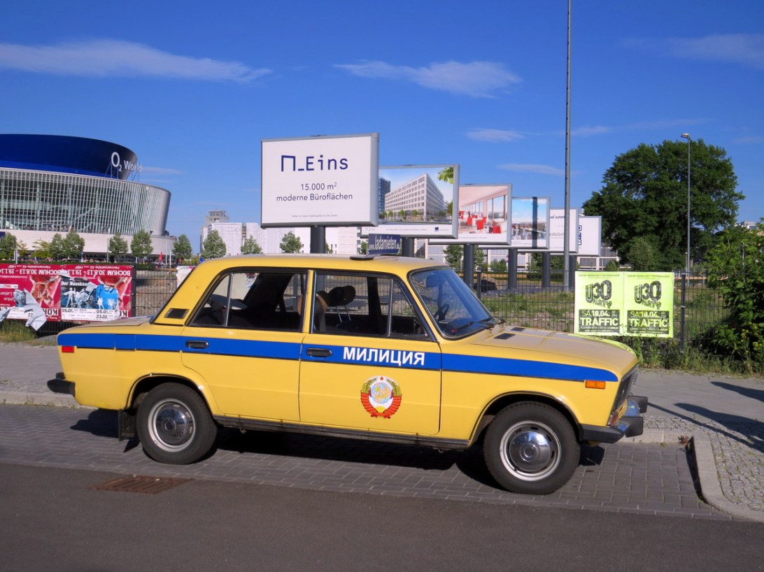 Quelle meilleure façon de conclure la journée que de vous montrer une réplique de voiture de police russe? (« Militsia » — police — sur la porte.) / What better way of wrapping up the day than to show you a replica of a Russian police car? (« Militsia — police — on the door.)