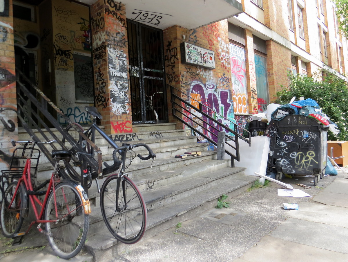 Ah, ça c’est l’ancien Berlin-Est qui correspond aux clichés des années 90. / Ah, that fits the 90’s cliché of East Berlin.