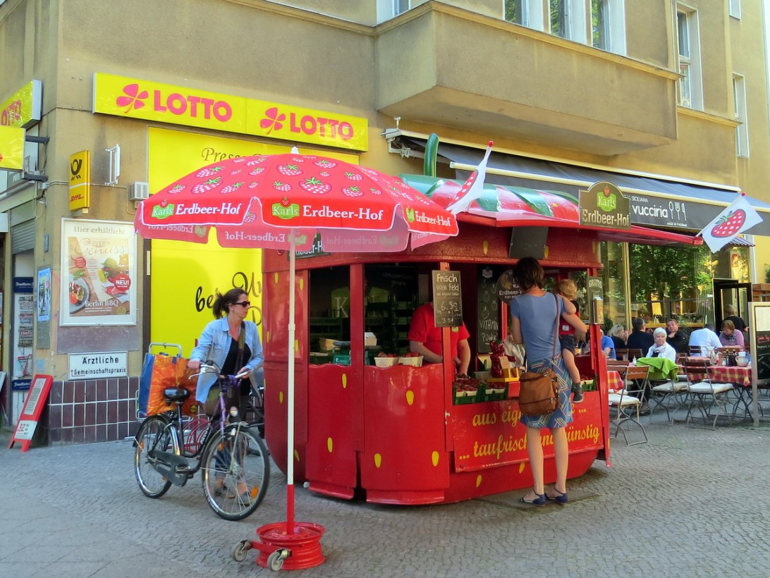 Une Erdbeer-Hof! On y vend, vous aurez deviné, des fraises. / An Erdbeer-Hof! They sell, you guessed it, strawberries.