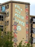- Haha. Media Spree est un mégaprojet de modernisation (donc $) des rives de la rivière Spree, où l’atmosphère est (était?) pas mal plus bohème/artistique et relaxe. / Hah. Media Spree is a megaproject aiming to modernize (so $$$) the banks of the Spree river, where things are (were?) much more relaxed and easygoing, sort of hippie-punkish-countercultural-style.