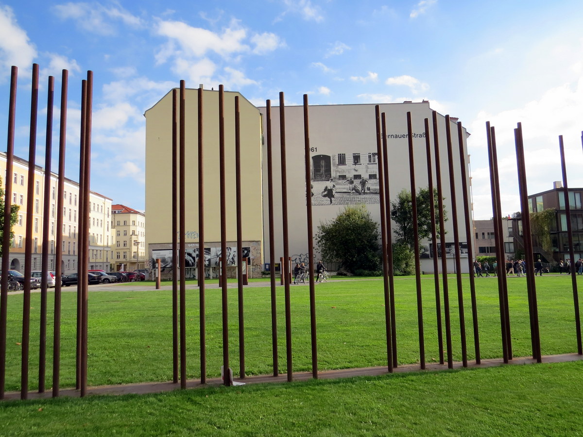 Les poteaux reproduisent le tracé du mur. / Those posts « copy » the path of the Wall.
