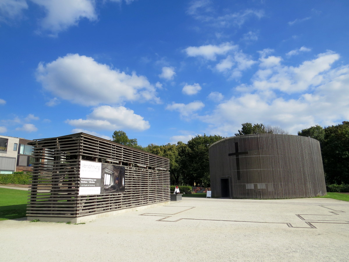 Chapelle de la réconciliation, qui remplace une chapelle démolie parce qu’elle entravait le tracé du Mur. / The Chapel of Reconciliation, built to replace the previous one, torn down because it was in the way (right on the border).