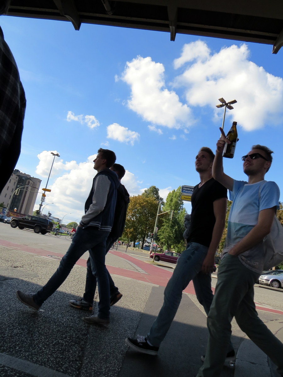 Ahh, Berlin avec le buvage de bière en pleine rue. J’adore. / Ah, Berlin doesn’t know open-container laws. Love it.