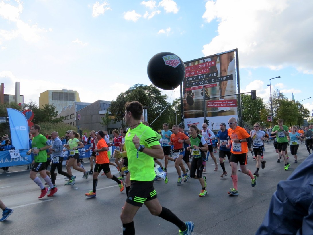 Son ballon portait l’inscription « 4:00 » (comme dans faire le marathon en 4 heures ou moins). / His balloon had « 4:00 » written on it (as is, complete the marathon in 4 hours or less).