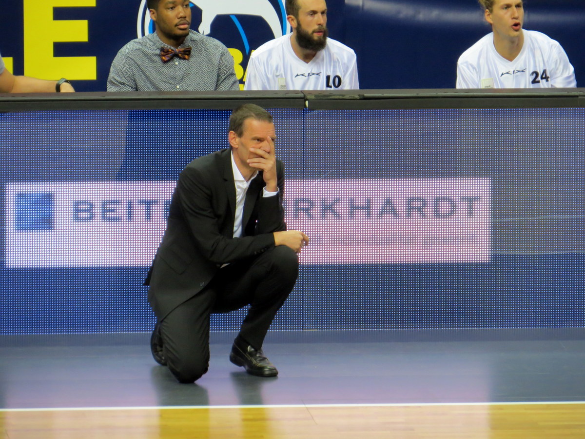 Bayreuth se fait piétiner en début de match, et l’entraîneur semble découragé. / Bayreuth are getting curbstomped in the first quarter, and their head coach doesn’t look impressed.