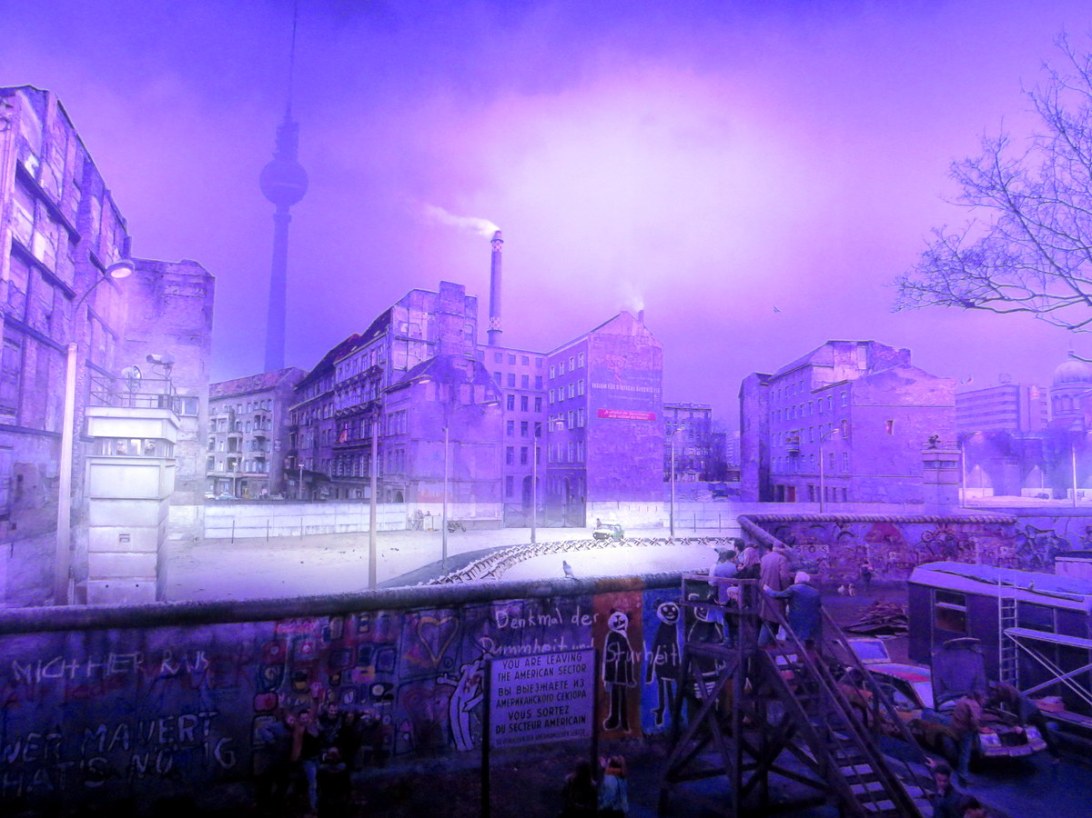 Le panorama est inspiré d’un endroit réel. Certains bâtiments ont été déplacés pour améliorer la vue, mais tout est réaliste. / That panorama was based on a real spot. Some buildings were moved to allow for a better view, but it is realistic as is.