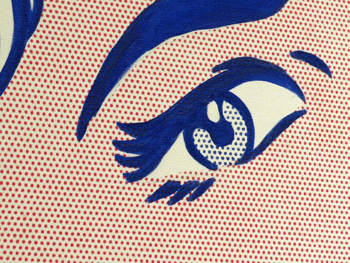 Il utilisait des points Benday (multitude de petits points pour créer un tout — les vieux journaux utilisaient ce processus). / He used Ben-Day dots (tiny dots creating a whole picture — old newspapers used that technique).