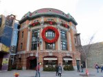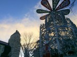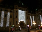 - Projection de flocons sur le bâtiment. Vive la technologie! / Computer animation of snowflakes on the building. Yay for technology!