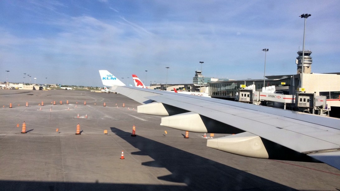 Départ de Montréal imminent. Vue typique du hublot. / Leaving Montreal shortly. Typical window view.