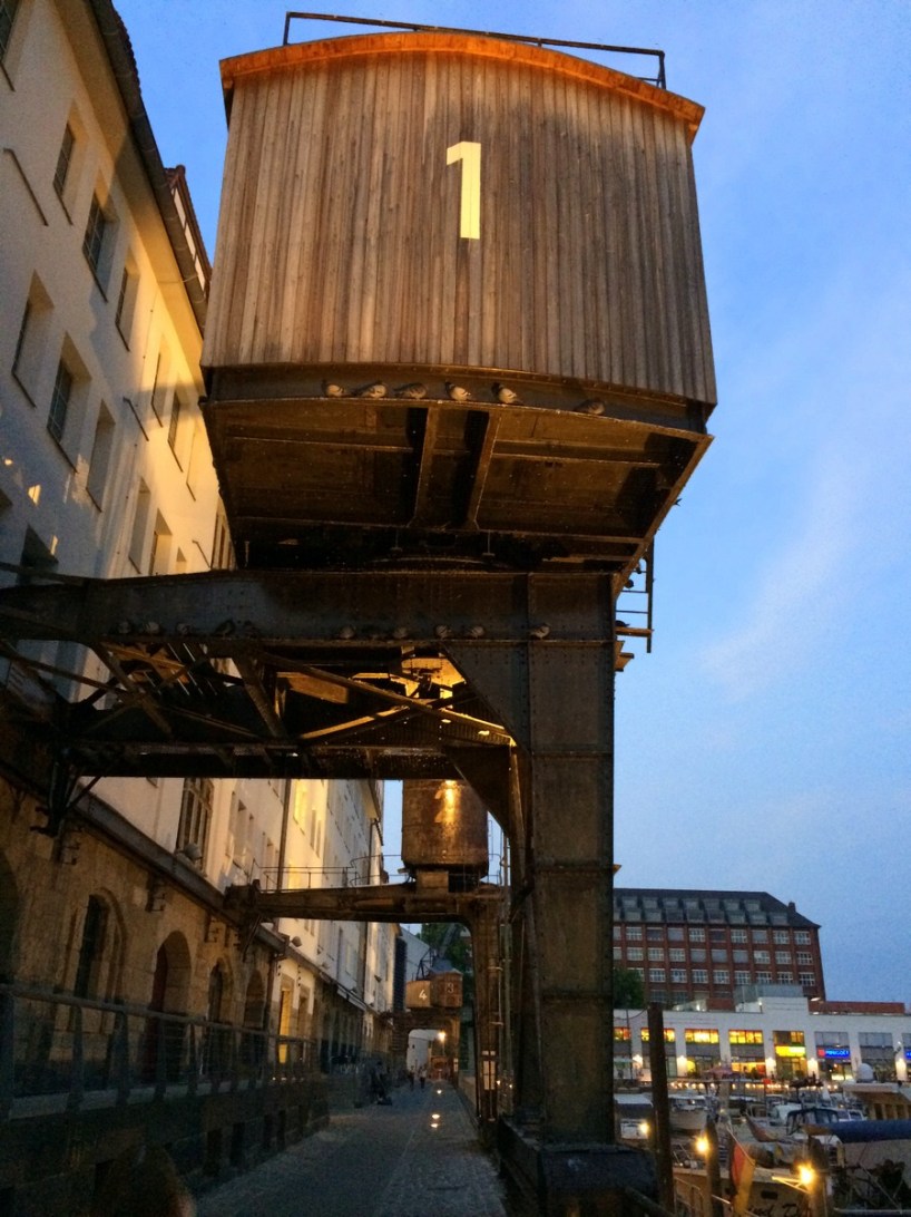 Voici une des grues sur le bord de l’eau. Tout ça faisait auparavant partie d’un complexe d’entrepôts, rénové et transformé depuis 2009. / One of the cranes next to the water. All this used to be a series of warehouses, renovated to its present form in 2009.