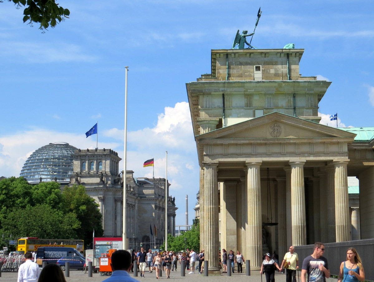 Marche vers le nord sur Ebertstrasse. Le Reichstag, la Porte de Brandenbourg et le drapeau du Québec dans la même image. Qui peut faire mieux? / Walking north on Ebertstrasse. The Reichstag, the Brandenburg Gate and the Quebec flag all in the same shot. Beat that.