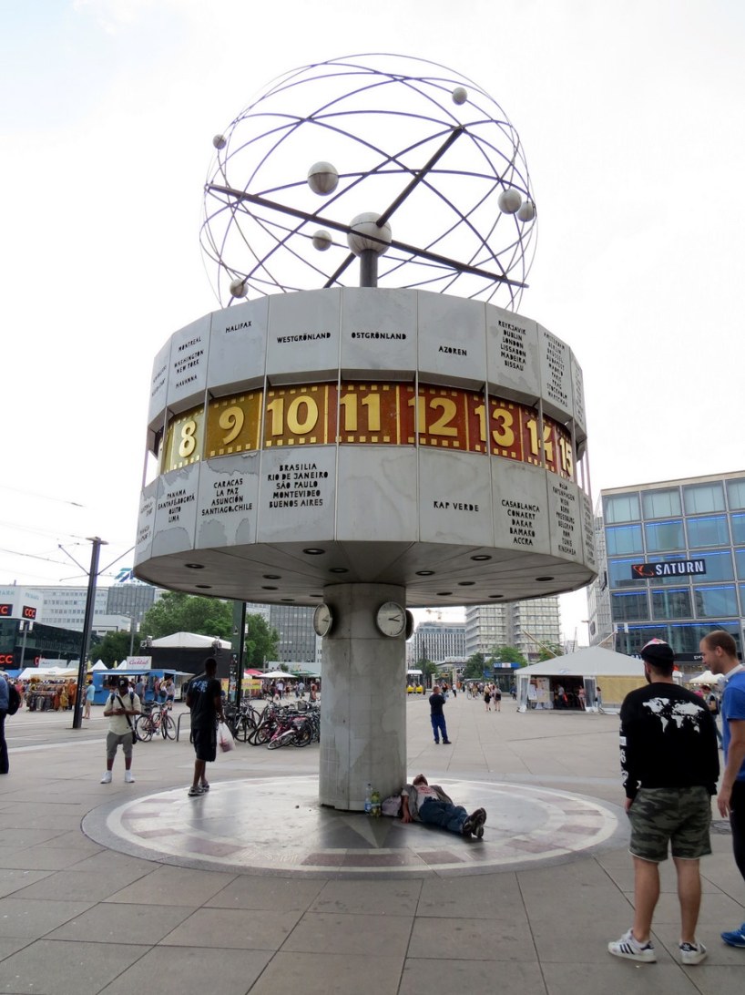 Et enfin, de retour à la Weltzeituhr. Eh oui, avec un clodo à ses pieds. / And finally, back to the Weltzeituhr. Yup, with a wino under it.