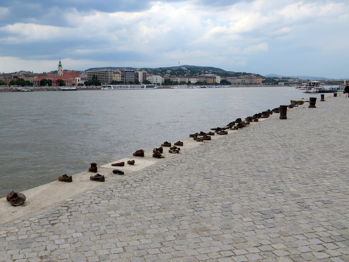 Pas très loin, le mémorial Chaussures au bord du Danube. / Nearby, the memorial Shoes on the Danube Bank.