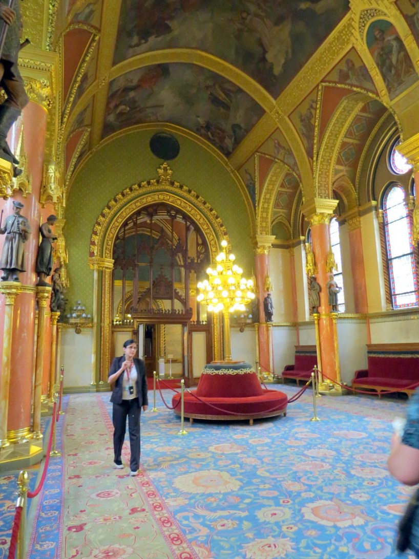 Notre guide dans la salle suivante, avec le tapis ÉNORME. / Our guide in the next room, with a GIGANTIC rug.