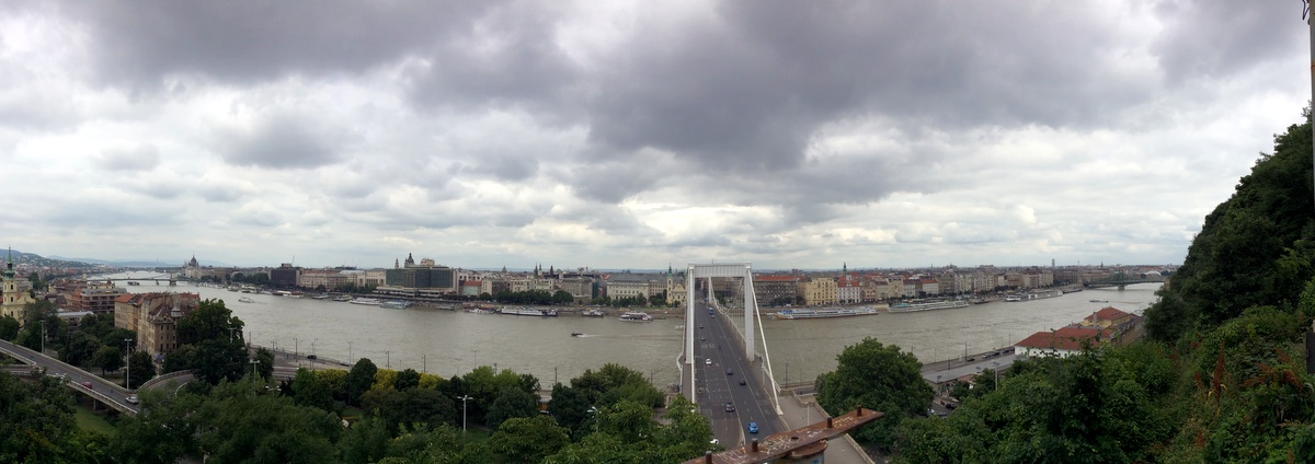Le pont Elisabeth vu de la colline Gellért. / Elisabeth Bridge seen from Gelléth Hill.