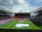 - Nous voici donc dans le stade. (Je vais vous épargner les détails de l’entrée. Disons simplement qu’il y avait un manque criant de personnel de sécurité. / We’re now in. I’ll spare you the details of the actual getting in. Let’s just say there was a severe lack of security personnel.
