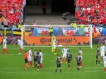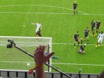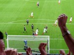 - Et le but! Sturridge! Ça vaut aussi la peine de noter que le partisan dans la rangée devant moi m’a envoyé (involontairement) le dos de son poing en plein dans les bijoux de famille. Disons que ça coupe court à toute célébration ou réaction… / Goal! Sturridge! It’s also worth noting that the guy in front of me, while celebrating, back-fisted me full-force straight in the family jewels (not on purpose). That cut short any chance of celebration or any reaction at all.