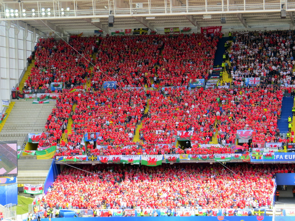 Les fans du Pays-de-Galles (nous étions du côté anglais). / Wales fans (we were on the English side).