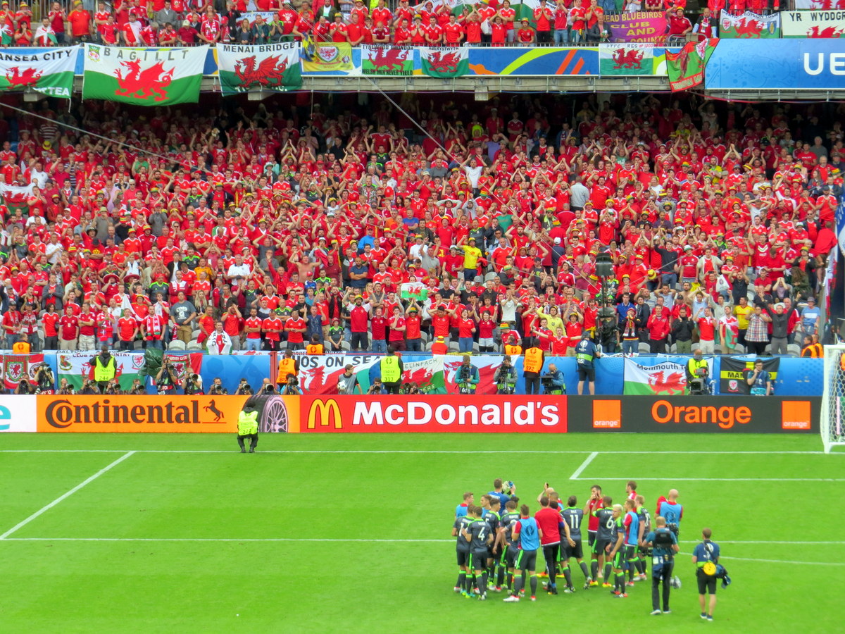 Les Gallois vont saluer leurs partisans. / Welsh players go salute their fans.