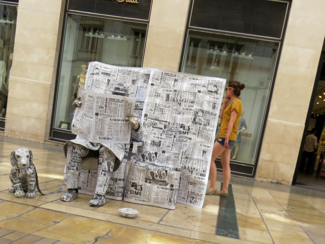 Sur la rue Larios, j’ai vu un homme-journal! / On Larios Street, I saw a newspaper-man!