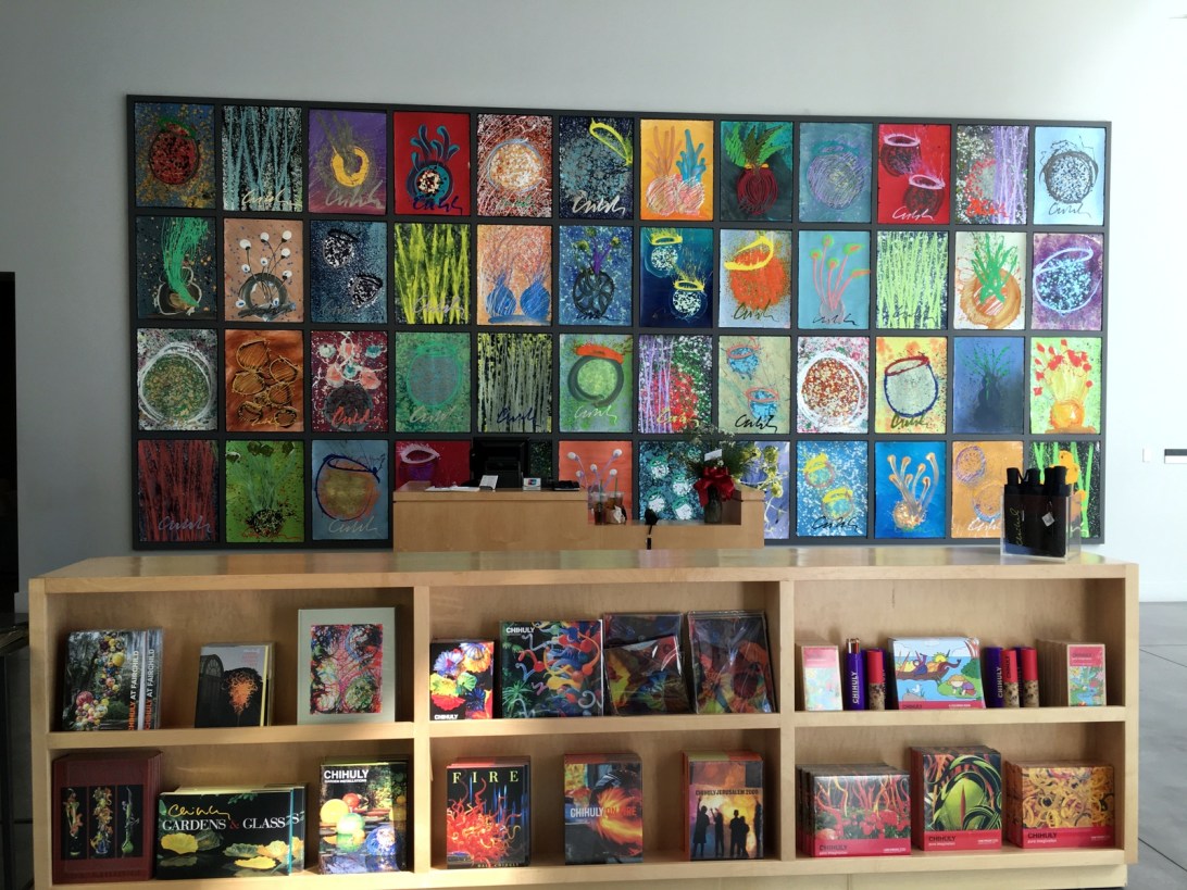 À côté de notre hôtel, une exposition du souffleur de verre bien connu Dale Chihuly. / Next to our hotel, a show by Dale Chihuly, a well-known glassblower.