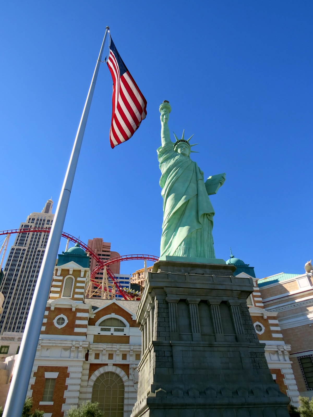 Ma promenade se poursuit donc. Je suis près du coin Tropicana/la Strip, là où se trouve le New York New York. / I continue my walk. I’m near the corner of Tropicana/the Strip, where the New York New York is.