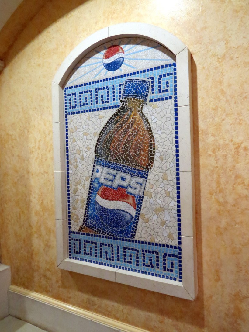 Une annonce de Pepsi en mosaïque de style ancien, ça fait bizarre, et pas dans le bon sens… / A Pepsi ad in an antique-style mosaic like that looks weird, and not in a good way…