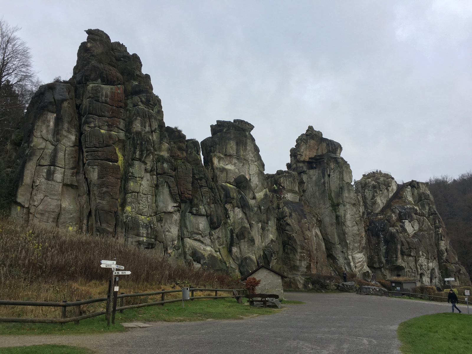Ah, les Externsteine! C’était un site païen au 16e siècle. / Ah, the Externsteine! It was a pagan site in the 16th century.