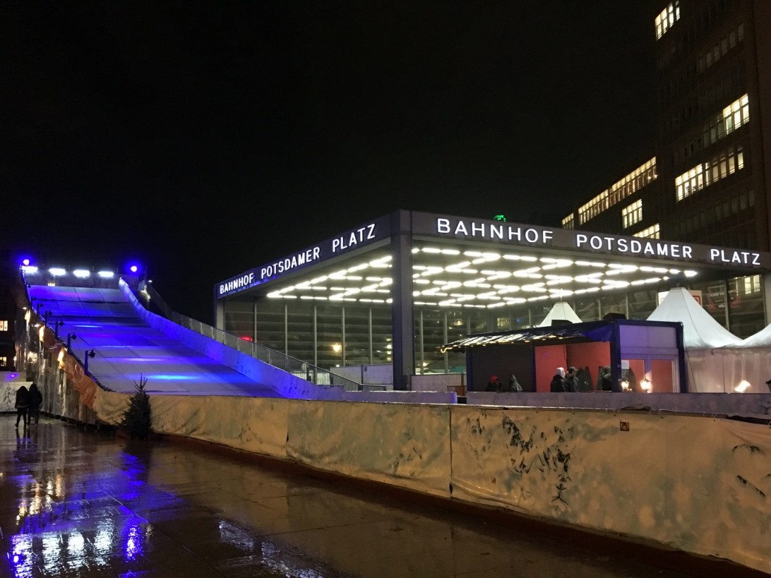 Même une glissade… sauf que la pluie n’aide pas. / There’s even a snow slide. The rain isn’t helping, though.