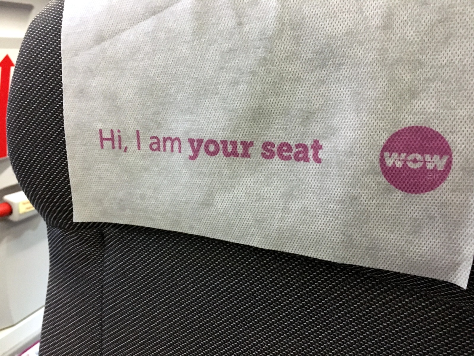 Leur logo (WOW) est partout. P.S.: Hello, seat. / The WOW logo is everywhere. P.S.: Hello, seat.