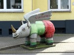 - Plusieurs rhinos ailés dans le centre-ville. C’est la « mascotte » de l’orchestre symphonique de la ville! / Many winged rhinos downtown. It’s actually the mascot of the Westphalian Philharmonic!