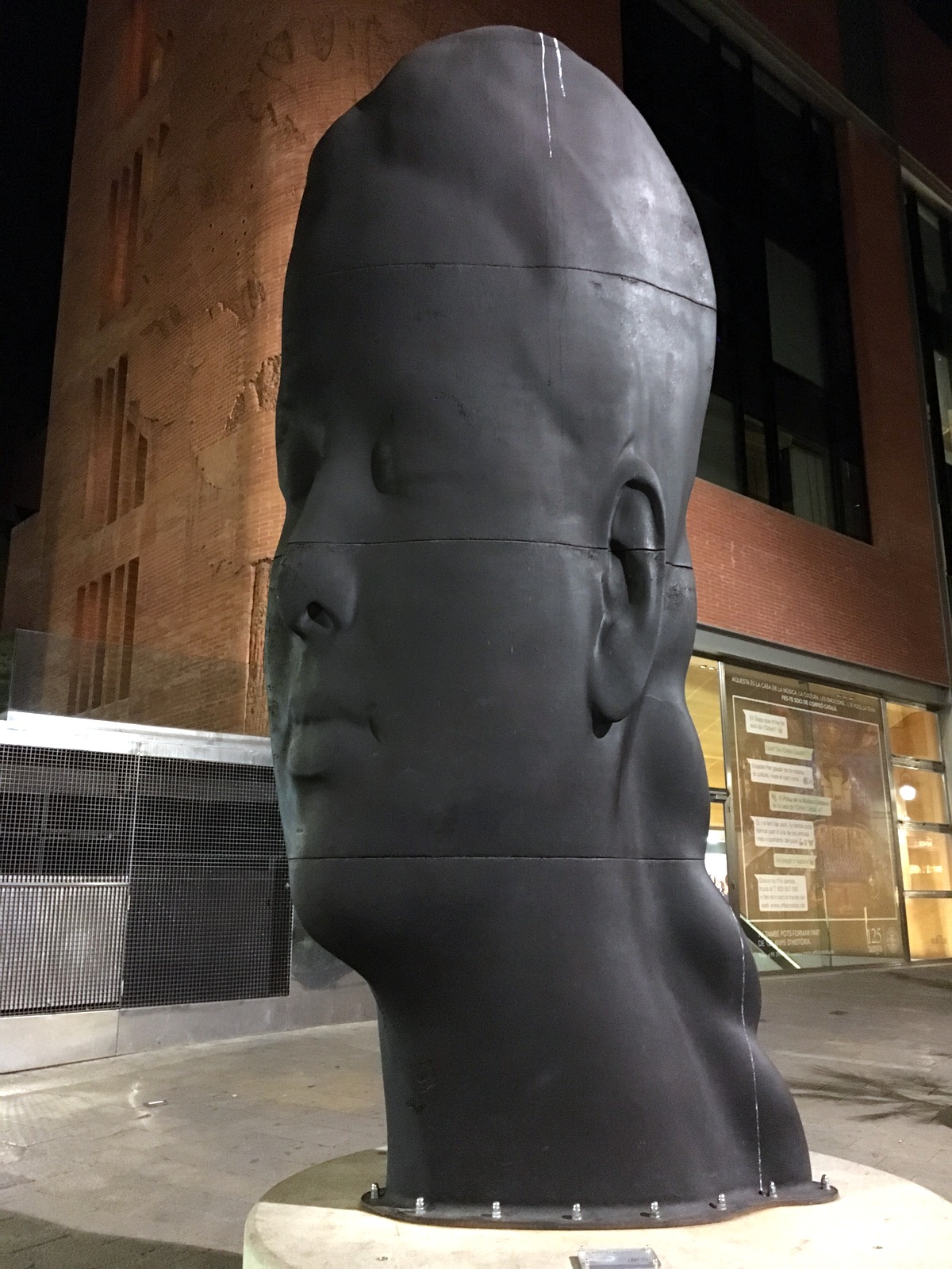 Et une statue un peu bizarre pour conclure cette excellente soirée. / And here’s a weird statue to finish off this excellent evening.