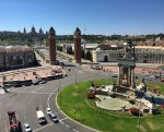 - Plaça d’Espanya, avec les Torres Venecianes à côté et le Museu Nacional d’Art de Catalunya en arrière-plan. / Plaça d’Espanya, with the Torres Venecianes next to it and the Museu Nacional d’Art de Catalunya in the background.