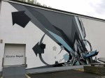 - Cette sphère avec l’inscription qui couvre une partie de la rue fait partie du musée Marta. / That metal sphere and the writing on the median is part of the Marta museum.