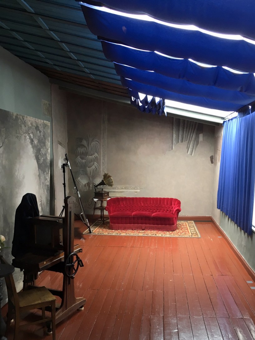 Studio photo style début 1900. J’aimais bien le contraste rideaux-sofa. / 1900-style photo studio. I loved the curtains-sofa color difference.